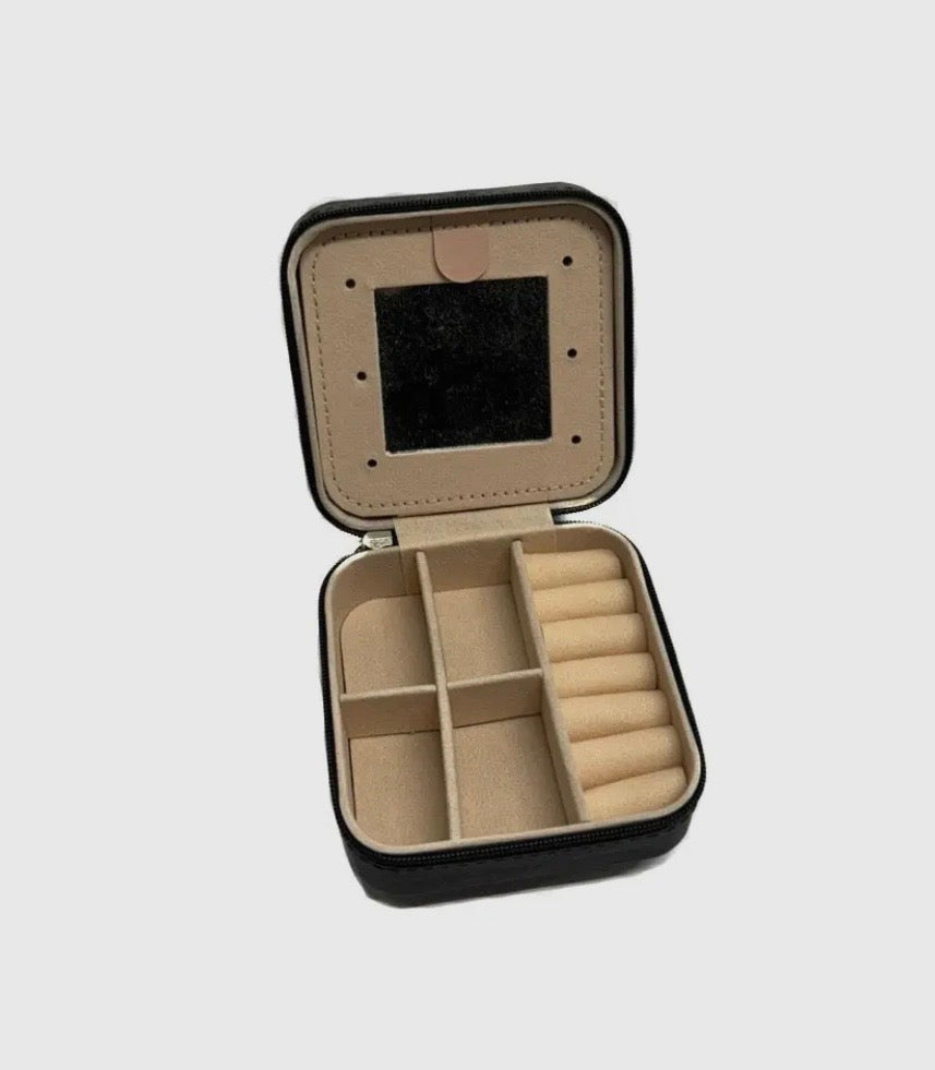 Measures 3.75 x 3.75 x 2 inches with a secure zipper closure.